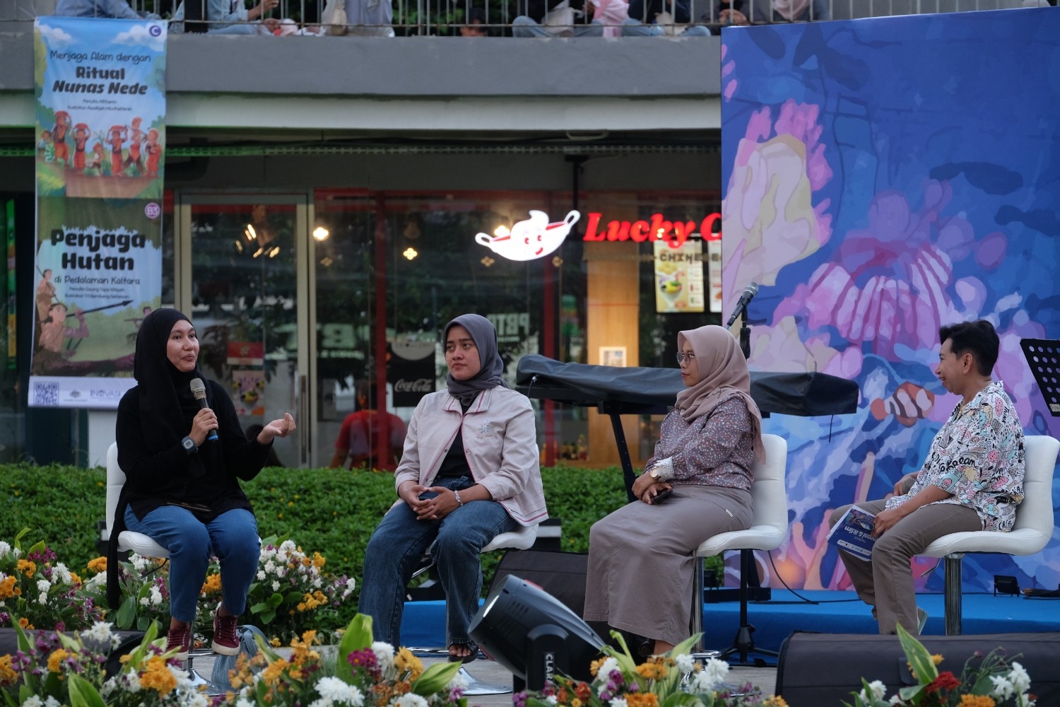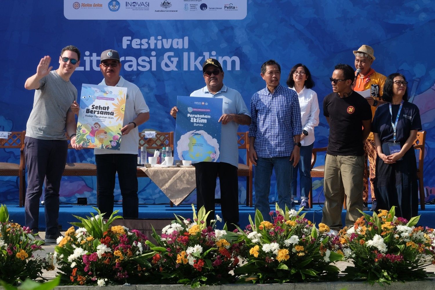 Peluncuran 32 buku cerita anak non fiksi dari INOVASI bertema iklim oleh Wakil Gubernur Jakarta Bapak Rano Karno, Gubernur Maluku Bapak Hendrik Lewerissa, Minister Counsellor Tim Stapleton, dan Kepala Pusat Perbukuan Bapak Supriyatno © Wienda Parwitasari/INOVASI 2025 Suasana Kampanye Street Art Festival bertajuk "Voicing Climate Change Adaptation Action through Inclusive Education", INOVASI berkolaborasi dengan Yayasan WWF Indonesia , Earth Hour Indonesia, dan Pusbuk Kementerian Pendidikan Dasar dan Menengah untuk menyuarakan pentingnya pendidikan yang tangguh terhadap perubahan iklim. © Earth Hour Indonesia/2025 Suasana hangat dalam diskusi bersama Penulis, Illustrator, dan Penerbit dari Yayasan Literasi Anak Indonesia di Festival Literasi dan Iklim 2025 yang berlangsung di Taman Literasi Martha Christina Tiahahu, Jakarta. © Wienda Parwitasari/INOVASI 2025 Melukis mural raksasa di Kampanye Street Art Festival, INOVASI berkolaborasi dengan Yayasan WWF Indonesia , Earth Hour Indonesia, dan Pusbuk Kementerian Pendidikan Dasar dan Menengah untuk menyuarakan pentingnya pendidikan yang tangguh terhadap perubahan iklim. © Earth Hour Indonesia/2025